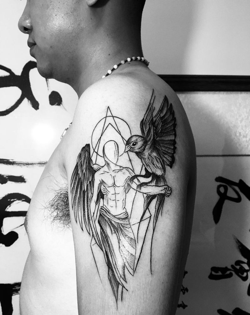 • 纹身吧推荐的披肩图腾半胛纹身图案作品展示