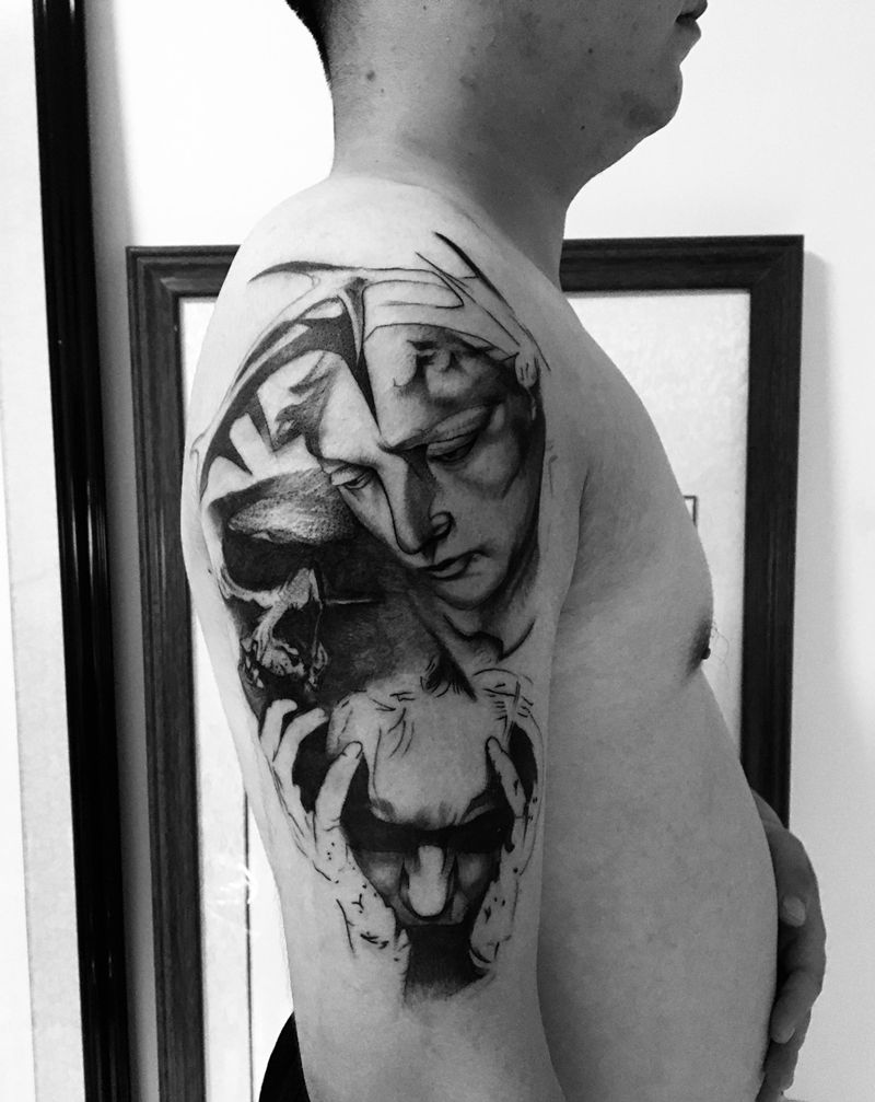 • 纹身吧推荐的披肩图腾半胛纹身图案作品展示