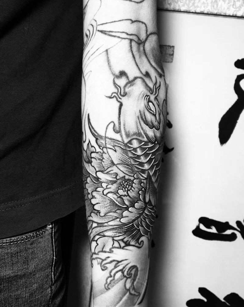 • T网红王老大花腿龙纹身图片_腿部新传统纹身图案
