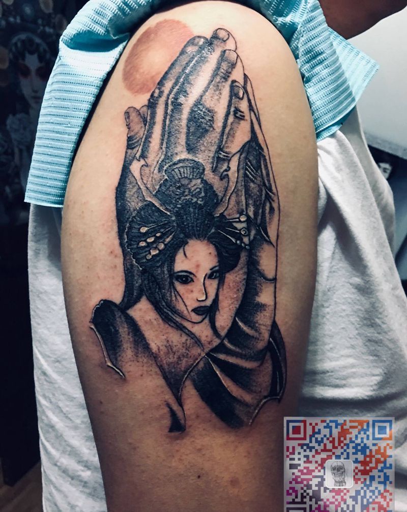 当前位置: 首页 >甘肃省兰州市纹身店-彦丶刺青·TATTOO工作室纹身图案>祈祷之手纹身图片_手臂新传统点刺纹身图案