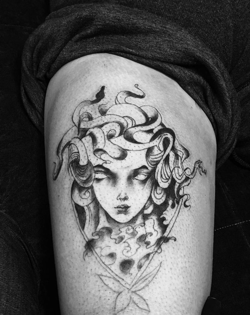 当前位置: 首页 >甘肃省酒泉市纹身店-烬刺青工作室纹身图案>Old school美杜莎纹身图片
