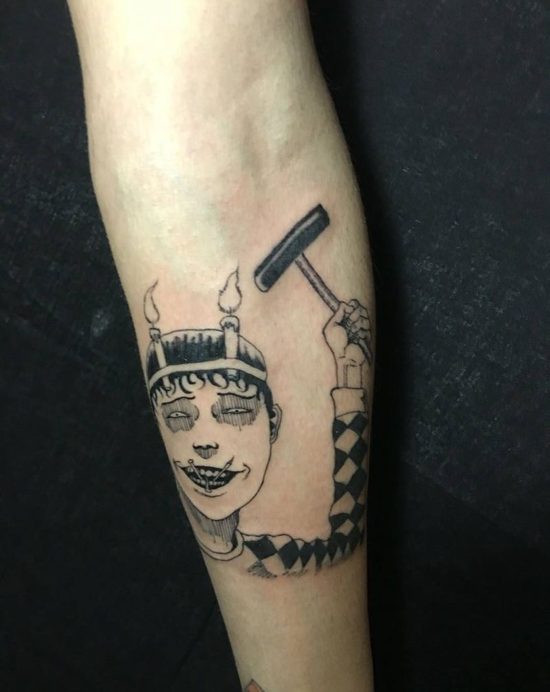 当前位置: 首页 >甘肃省酒泉市纹身店-烬刺青工作室纹身图案>双一纹身图片_成品手臂传统写实人物鬼神纹身图案