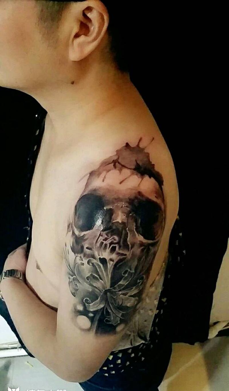当前位置: 首页 >甘肃省酒泉市纹身店-烬刺青工作室纹身图案>彼岸花骷髅。纹身图片