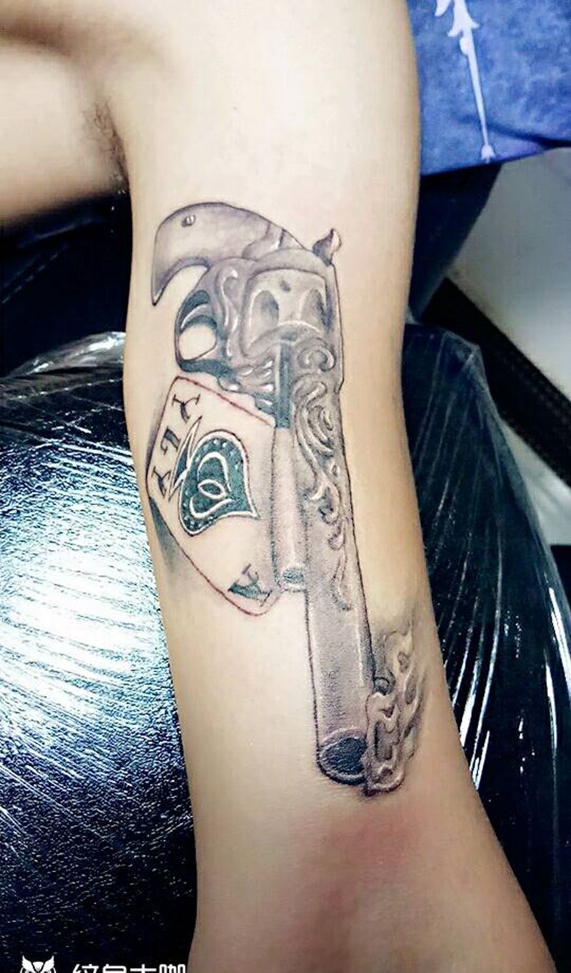 当前位置: 首页 >甘肃省酒泉市纹身店-烬刺青工作室纹身图案>枪纹身图片_手臂欧美写实成品纹身图案