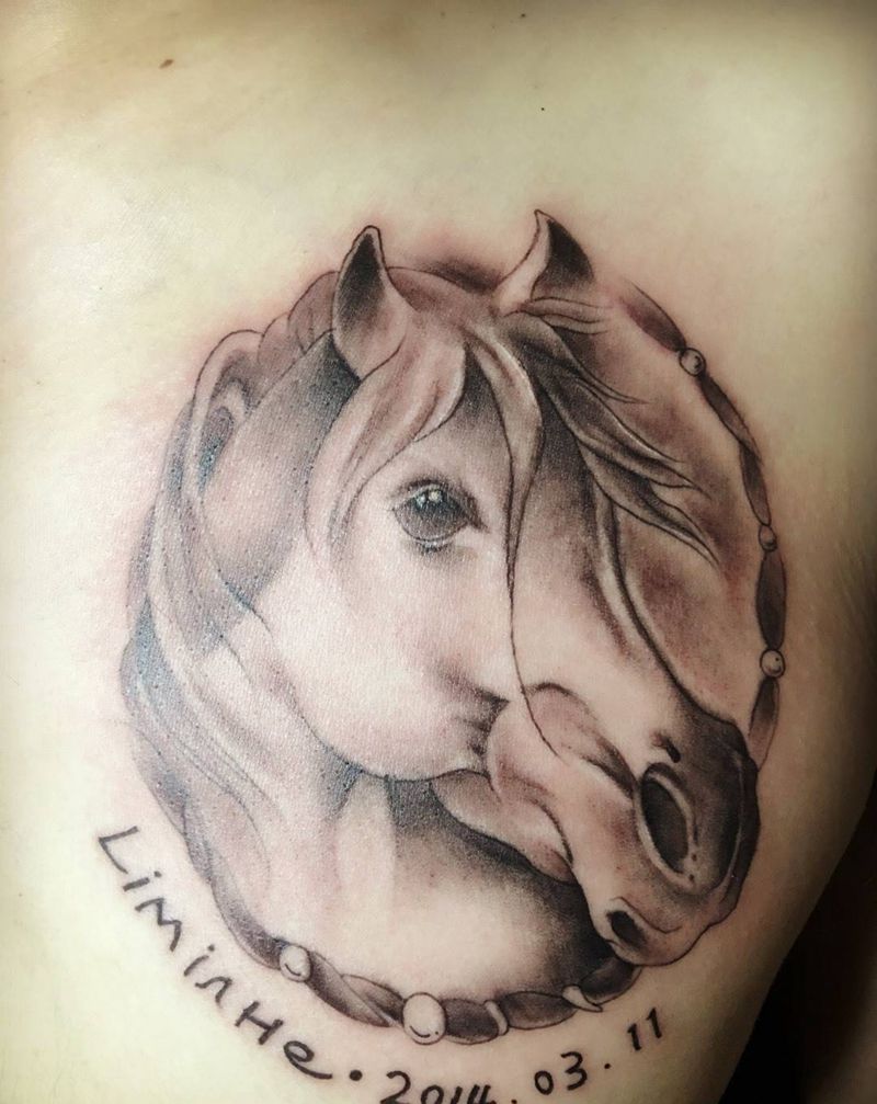 当前位置: 首页 >甘肃省酒泉市纹身店-烬刺青工作室纹身图案>马纹身图片_成品胸部写实国画传统动物纹身图案