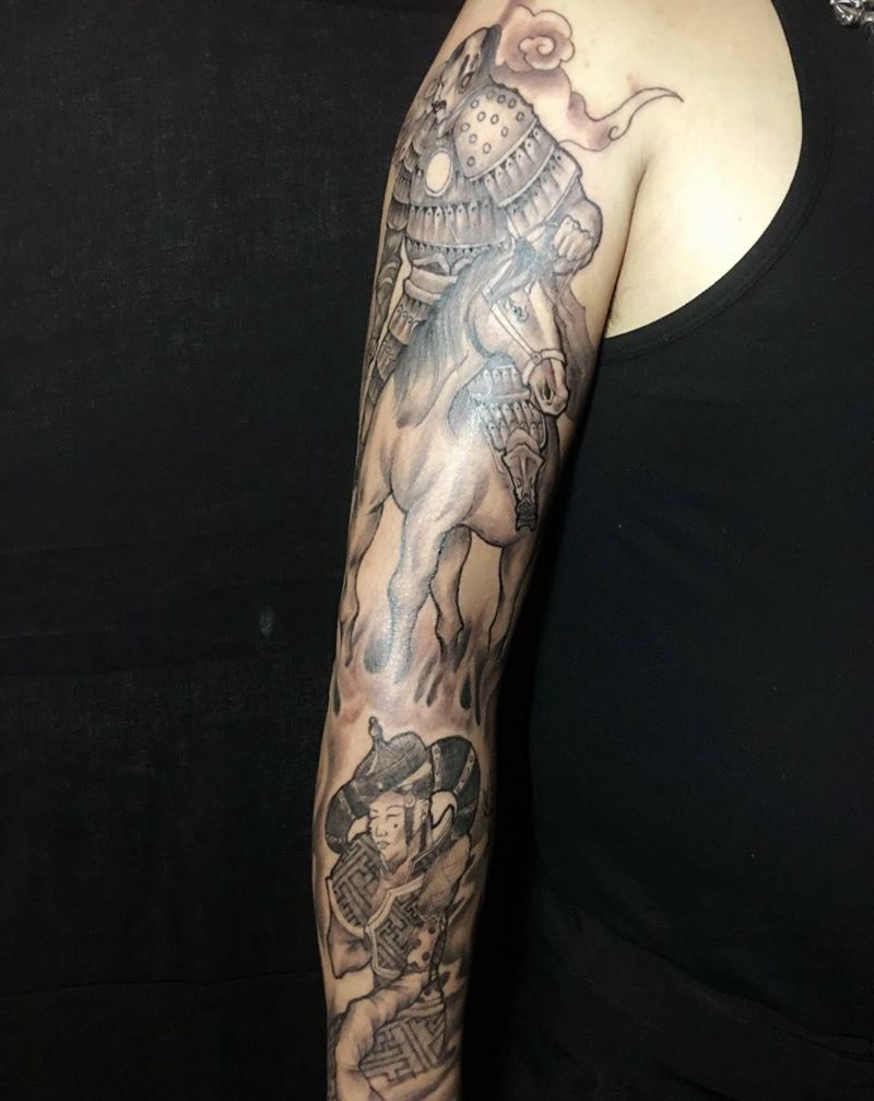 当前位置: 首页 >甘肃省酒泉市纹身店-烬刺青工作室纹身图案>出征纹身图片_成品手臂传统肖像习俗人物宗教纹身图案