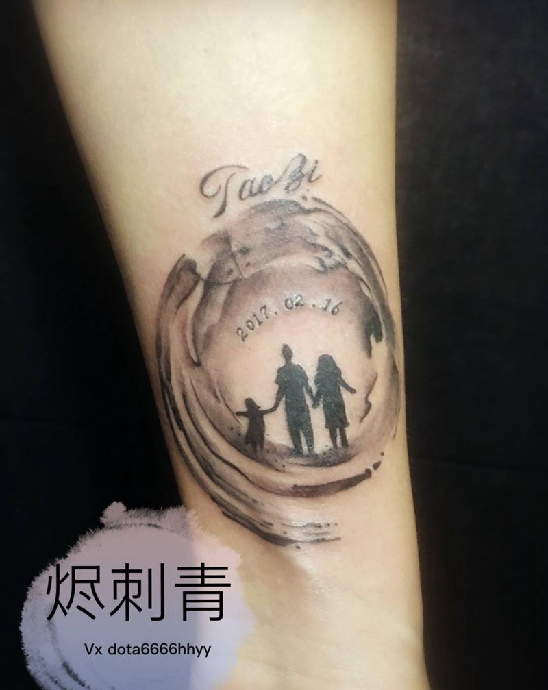 • T家庭图,一家四口生日纪念!纹身图片_手臂纹身图案