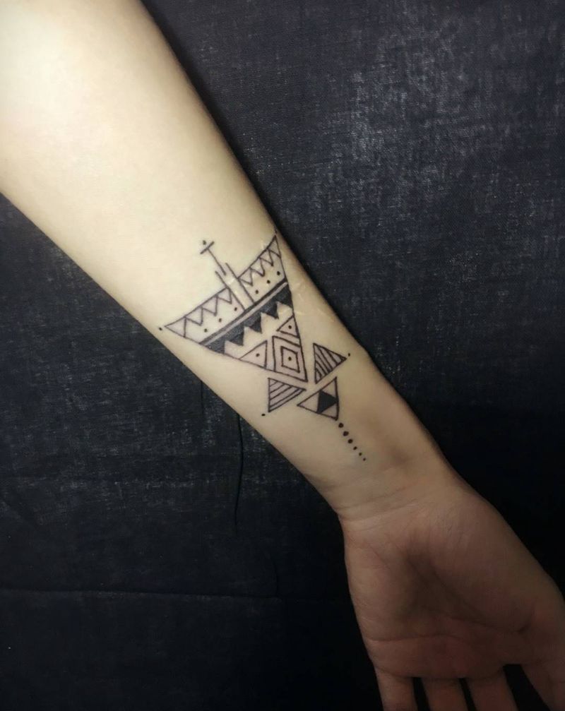 海纳1纹身图片_成品手臂清新传统几何字符纹身图案