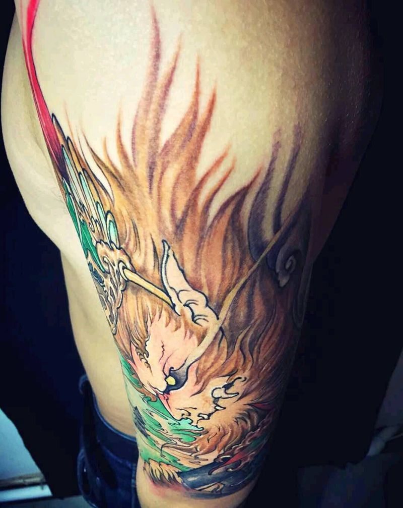 • T网红王老大花腿龙纹身图片_腿部新传统纹身图案