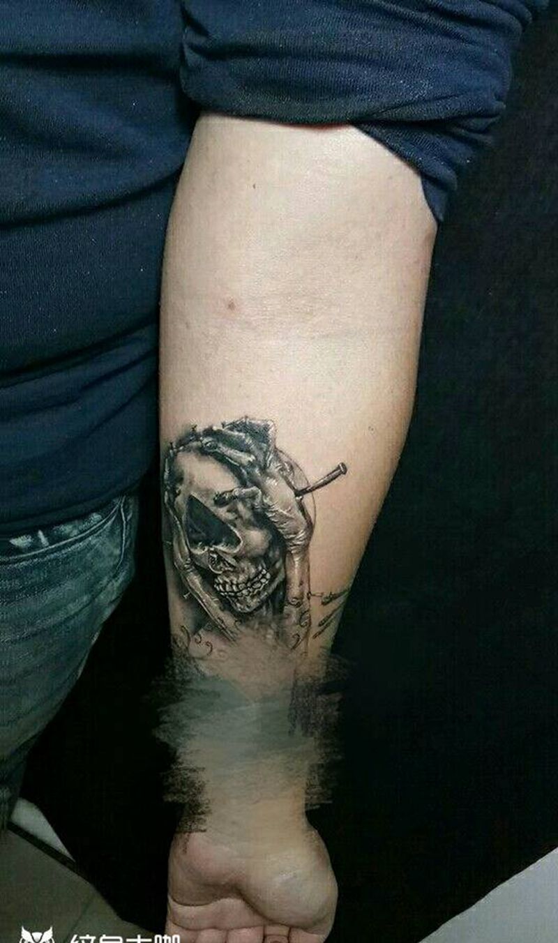黑桃A纹身图片_手臂欧美写实鬼神宗教成品纹身图案