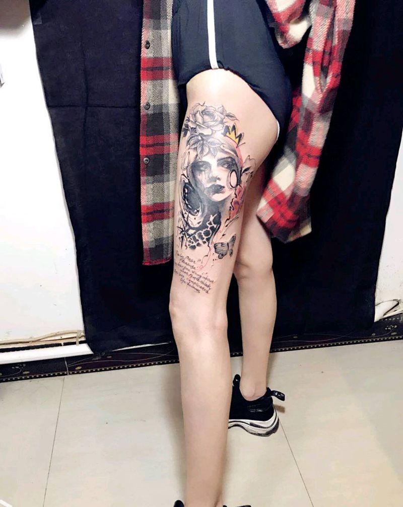 • T网红王老大花腿龙纹身图片_腿部新传统纹身图案