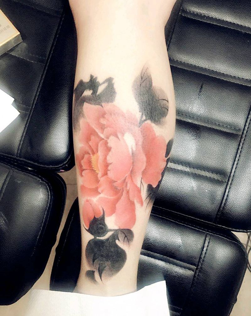 • T网红王老大花腿龙纹身图片_腿部新传统纹身图案