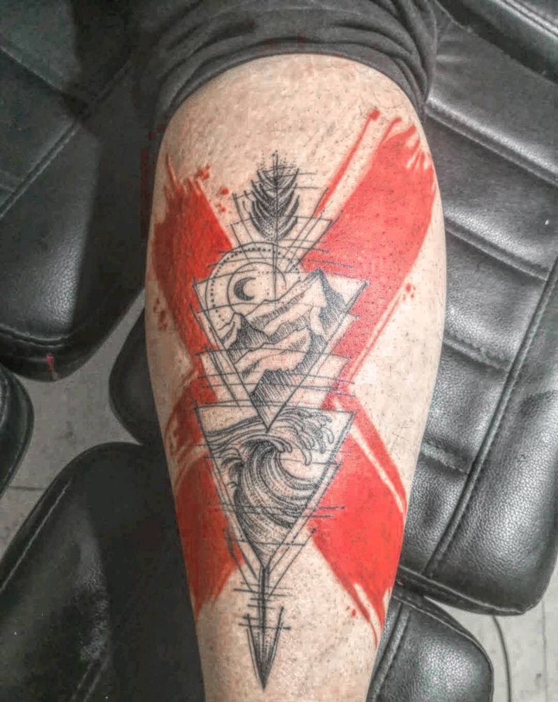 • T网红王老大花腿龙纹身图片_腿部新传统纹身图案