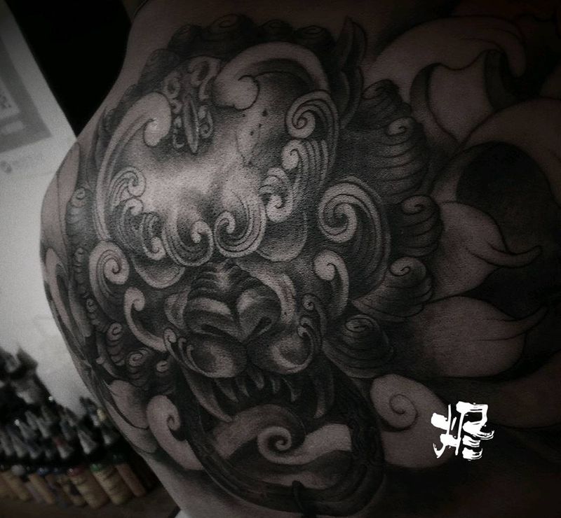 当前位置: 首页 >甘肃省酒泉市纹身店-烬刺青工作室纹身图案>唐狮纹身图片_背部传统鬼神宗教成品纹身图案
