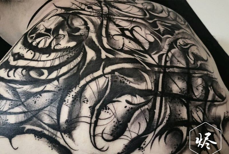 • 纹身吧推荐的披肩图腾半胛纹身图案作品展示