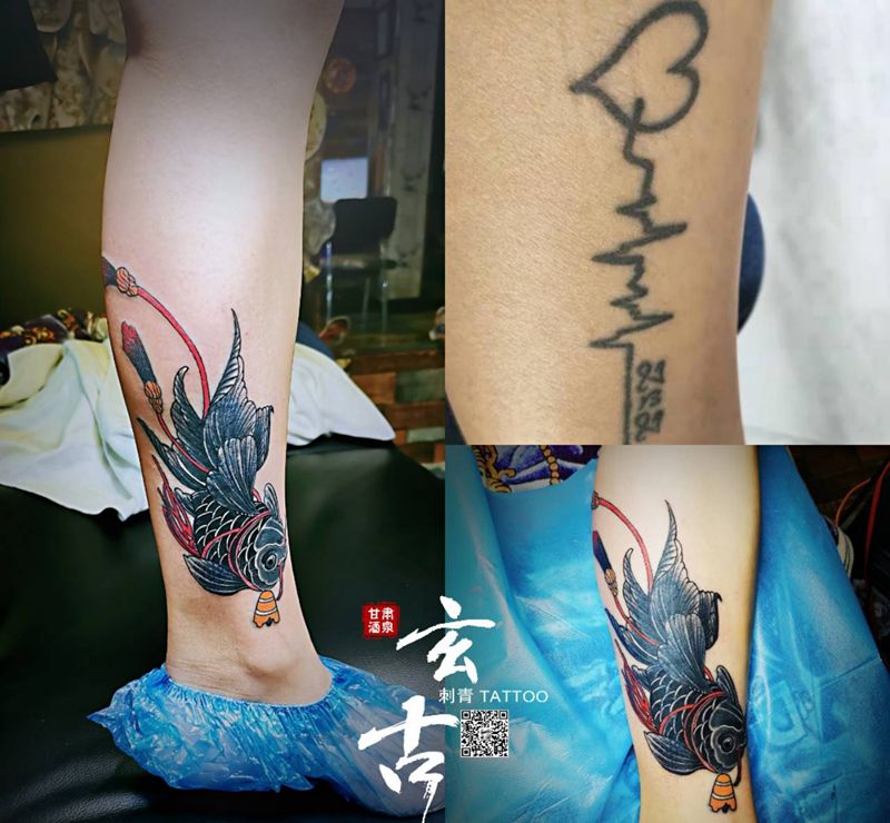 当前位置: 首页 >甘肃省酒泉市纹身店-玄古.刺青纹身图案>金鱼纹身图片_腿部新传统金鱼纹身图案