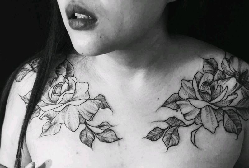 • 女性大花胸纹身_43张霸气漂亮的女性大花胸纹身图案作品