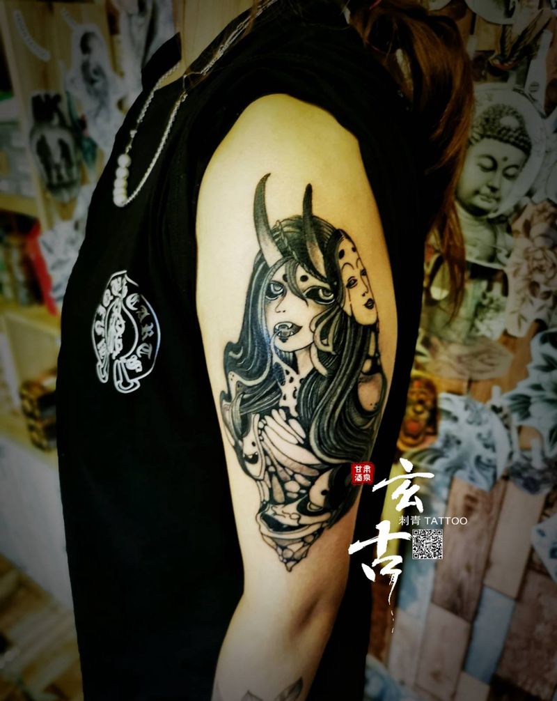 当前位置: 首页 >甘肃省酒泉市纹身店-玄古.刺青纹身图案>小恶魔纹身图片_手臂新传统点刺纹身图案