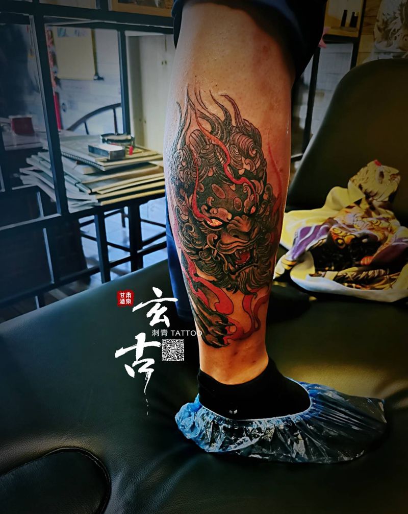 当前位置: 首页 >甘肃省酒泉市纹身店-玄古.刺青纹身图案>唐狮纹身图片_腿部新传统狮子纹身图案