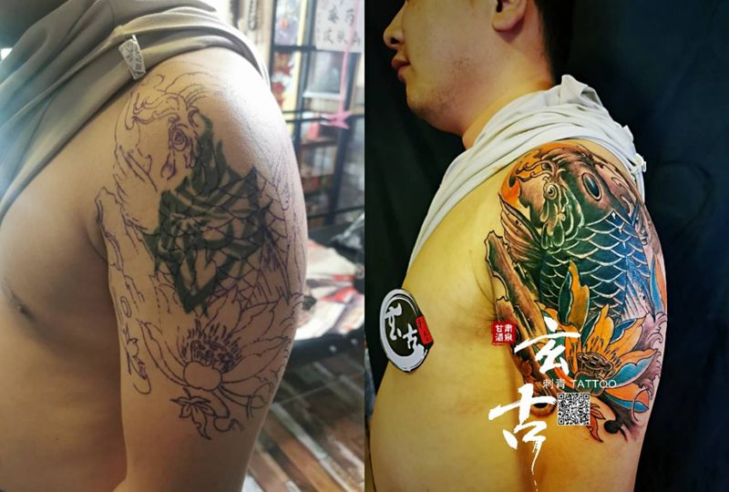 当前位置: 首页 >甘肃省酒泉市纹身店-玄古.刺青纹身图案>锦鲤纹身图片_手臂新传统鱼纹身图案