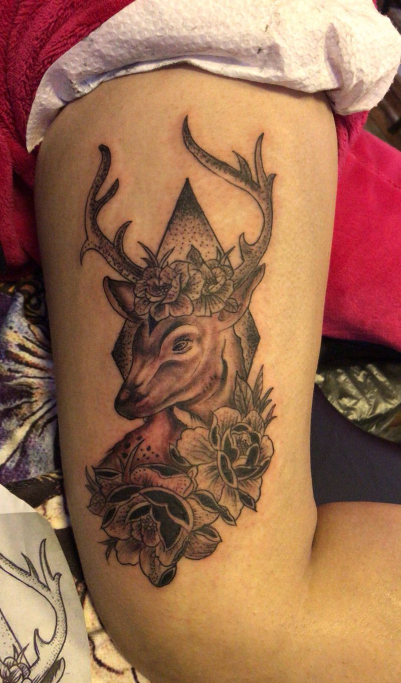 当前位置: 首页 >甘肃省酒泉市纹身店-玄古.刺青纹身图案>一鹿相伴纹身图片