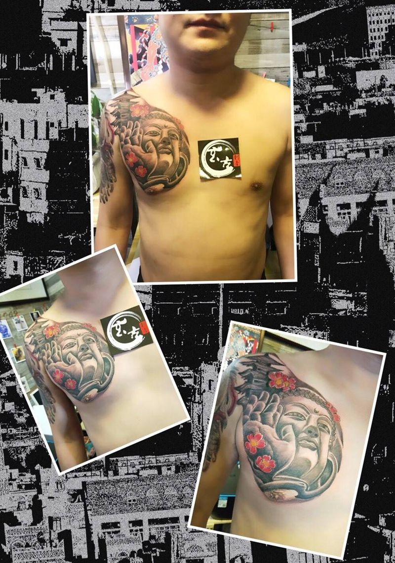 当前位置: 首页 >甘肃省酒泉市纹身店-玄古.刺青纹身图案>半甲大佛纹身图片