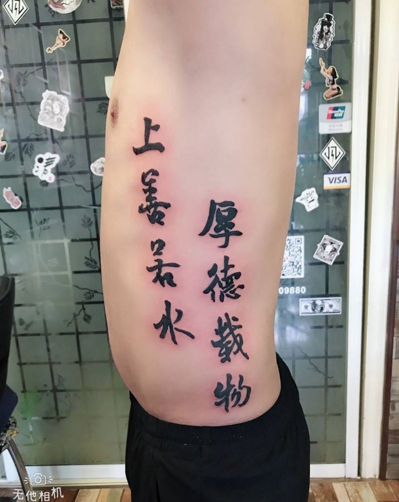 当前位置: 首页 >甘肃省酒泉市纹身店-玄古.刺青纹身图案>上善若水,厚德载物纹身图片
