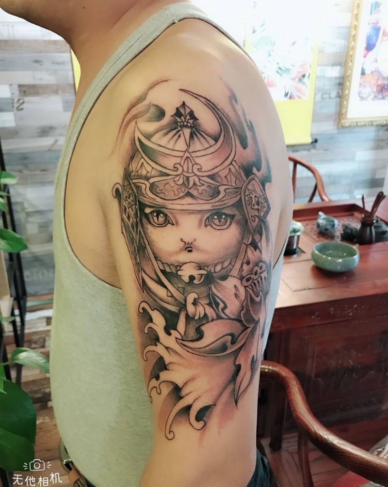 当前位置: 首页 >甘肃省酒泉市纹身店-玄古.刺青纹身图案>武士猫纹身图片