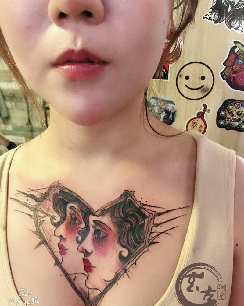 • 女性大花胸纹身_43张霸气漂亮的女性大花胸纹身图案作品