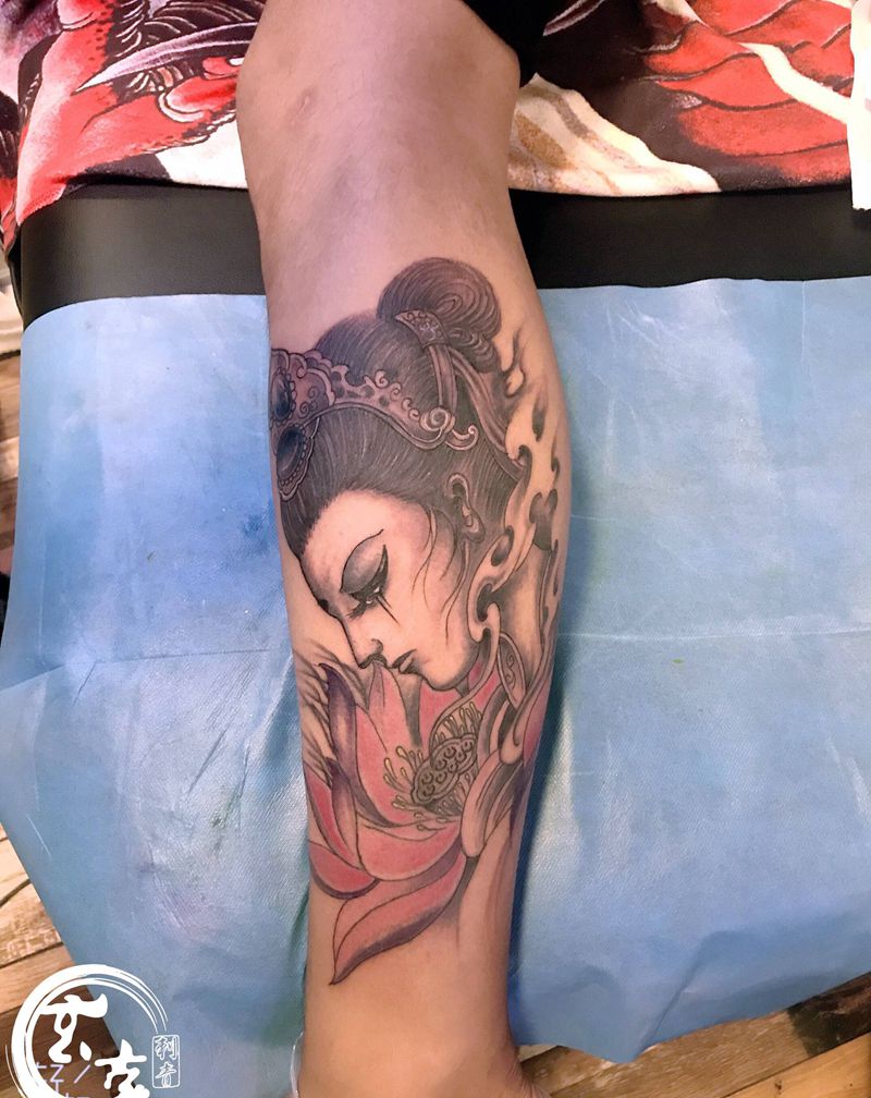 艺妓纹身图片_腿部新传统艺妓纹身图案