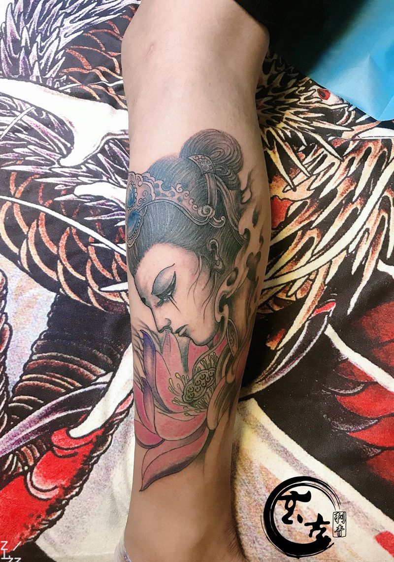 艺妓纹身图片_腿部新传统艺妓纹身图案