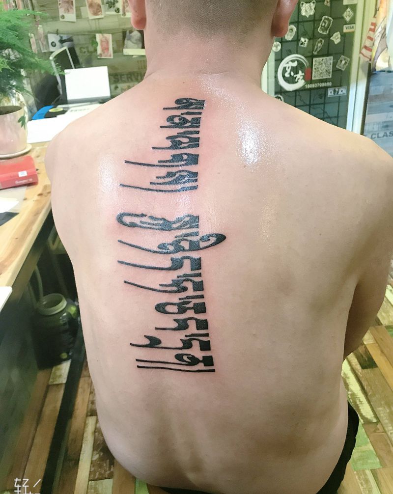 梵文纹身图片_背部花体字纹身图案
