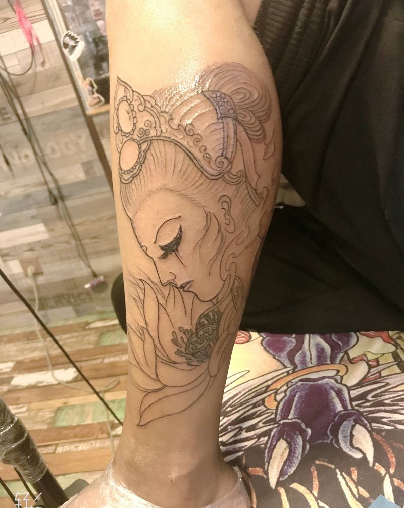 当前位置: 首页 >甘肃省酒泉市纹身店-玄古.刺青纹身图案>艺妓纹身图片_脚部腿部新传统纹身图案