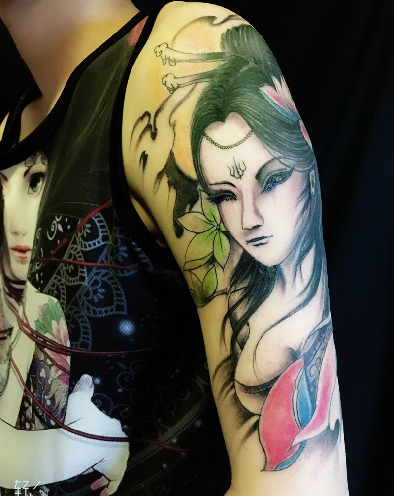 当前位置: 首页 >甘肃省酒泉市纹身店-玄古.刺青纹身图案>艺妓纹身图片_手臂新传统纹身图案