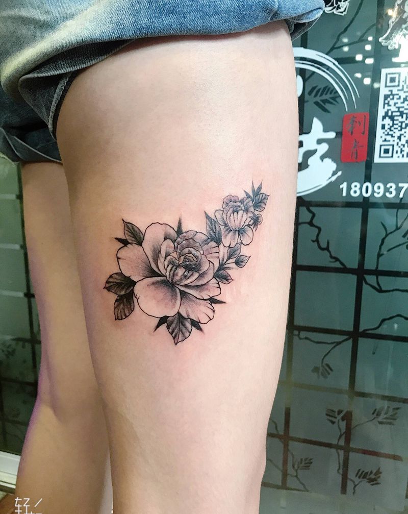 当前位置: 首页 >甘肃省酒泉市纹身店-玄古.刺青纹身图案>素花纹身图片_腿部新传统素花纹身图案