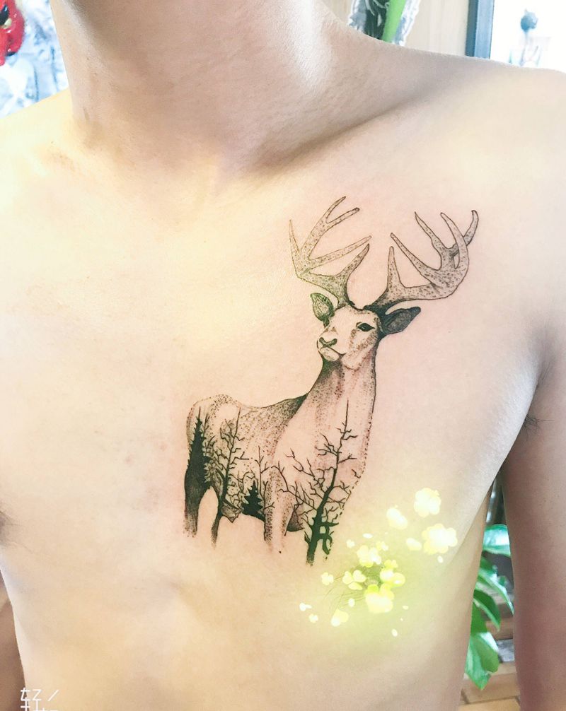 当前位置: 首页 >甘肃省酒泉市纹身店-玄古.刺青纹身图案>麋鹿纹身图片_胸部点刺纹身图案