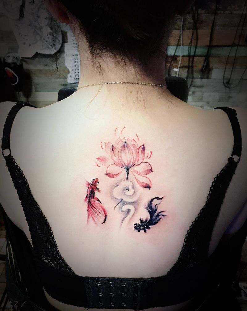 当前位置: 首页 >甘肃省酒泉市纹身店-玄古.刺青纹身图案>水墨鱼纹身图片_背部水彩纹身图案
