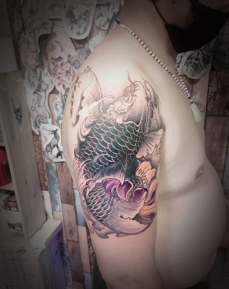 当前位置: 首页 >甘肃省酒泉市纹身店-玄古.刺青纹身图案>锦鲤纹身图片_手臂新传统纹身图案