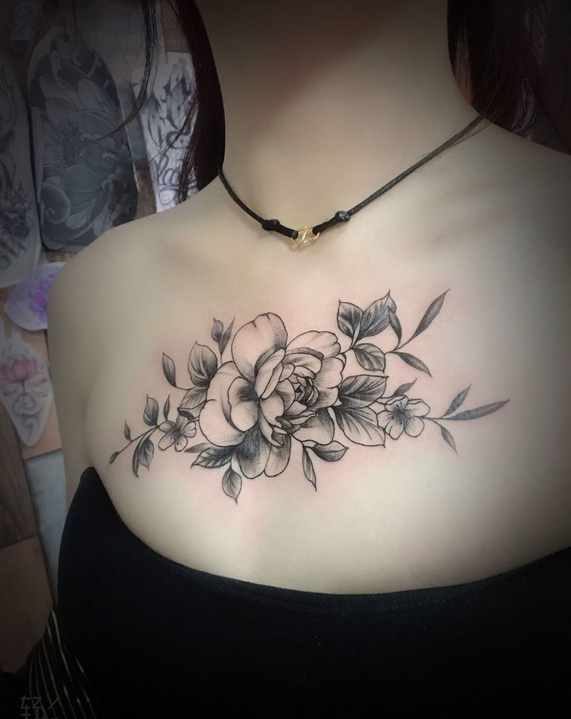 • 女性大花胸纹身_43张霸气漂亮的女性大花胸纹身图案作品