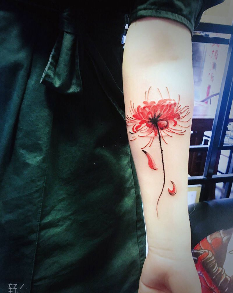 彼岸花纹身图片_手臂新传统水彩纹身图案