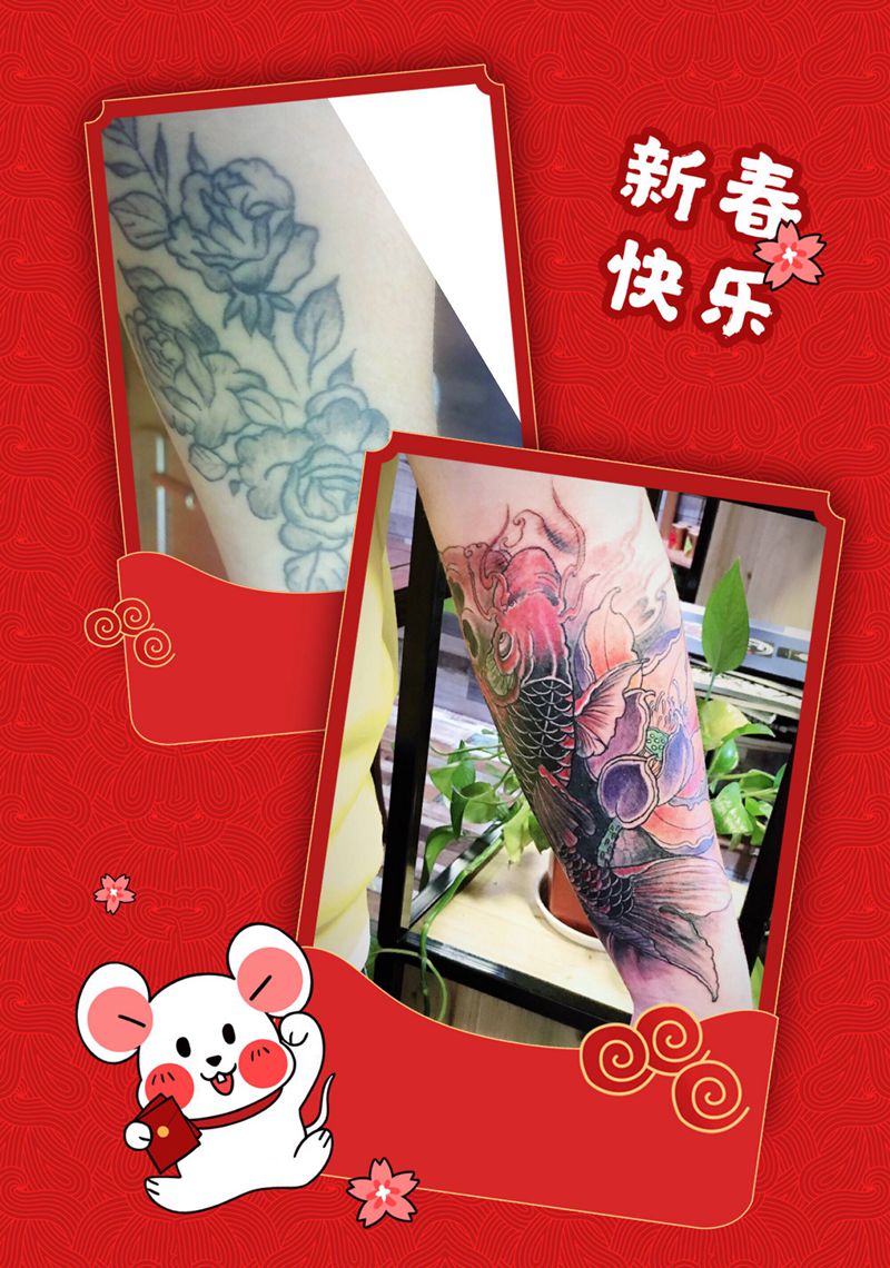 当前位置: 首页 >甘肃省酒泉市纹身店-玄古.刺青纹身图案>小臂遮盖锦鲤纹身图片_手臂新传统纹身图案