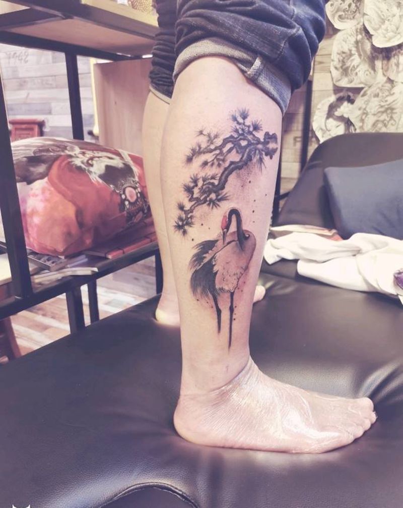 当前位置: 首页 >甘肃省酒泉市纹身店-玄古.刺青纹身图案>鹤纹身图片_腿部水墨纹身图案