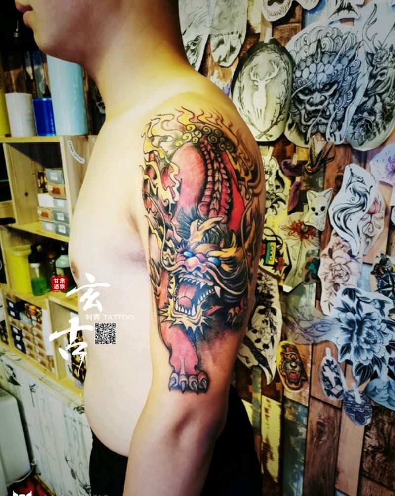 当前位置: 首页 >甘肃省酒泉市纹身店-玄古.刺青纹身图案>麒麟纹身图片_手臂新传统纹身图案