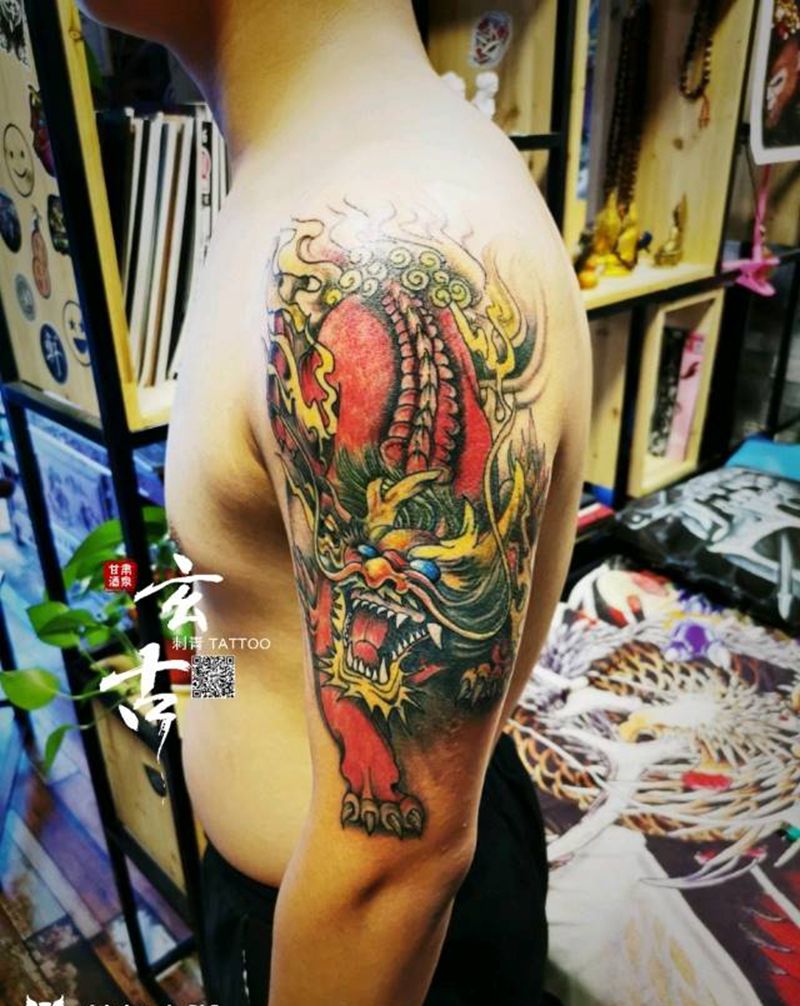 当前位置: 首页 >甘肃省酒泉市纹身店-玄古.刺青纹身图案>麒麟纹身图片_手臂新传统纹身图案
