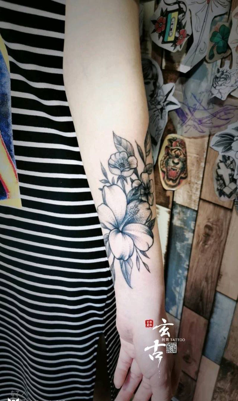 当前位置: 首页 >甘肃省酒泉市纹身店-玄古.刺青纹身图案>素花纹身图片_手臂新传统素花纹身图案