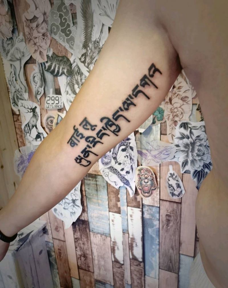 当前位置: 首页 >甘肃省酒泉市纹身店-玄古.刺青纹身图案>梵文纹身图片_手臂花体字纹身图案