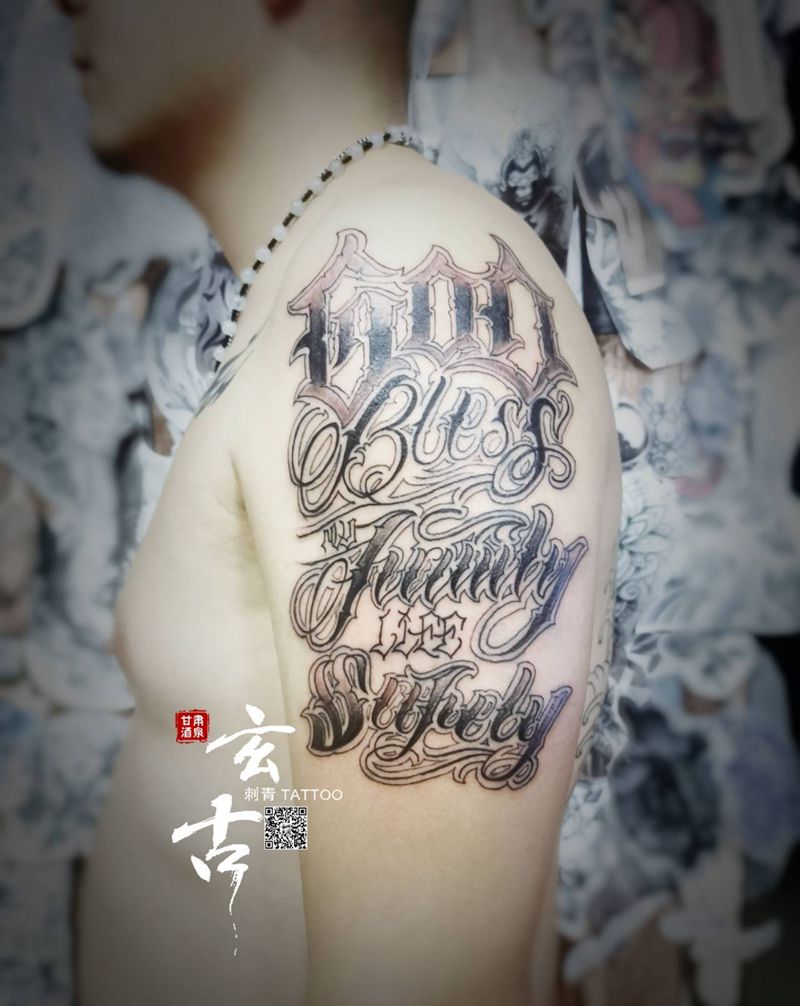 当前位置: 首页 >甘肃省酒泉市纹身店-玄古.刺青纹身图案>花体英文纹身图片_手臂花体字纹身图案