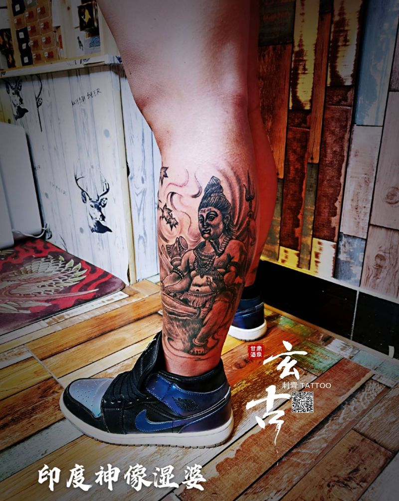 湿婆纹身图片_腿部新传统雕塑纹身图案