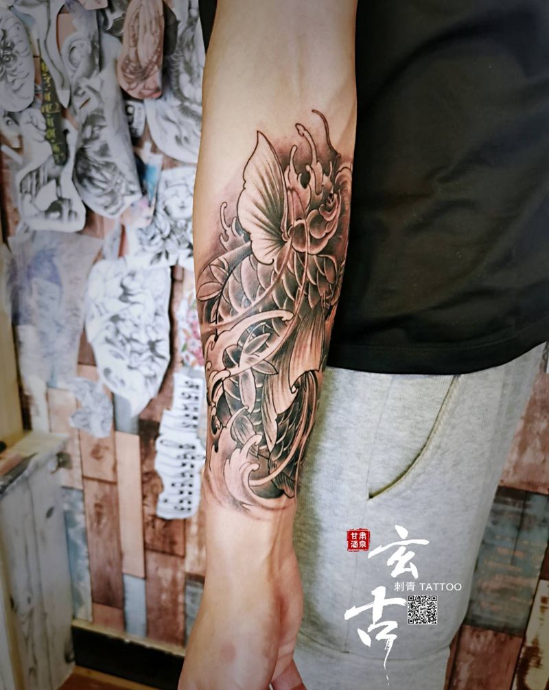 当前位置: 首页 >甘肃省酒泉市纹身店-玄古.刺青纹身图案>锦鲤纹身图片_手臂新传统锦鲤纹身图案