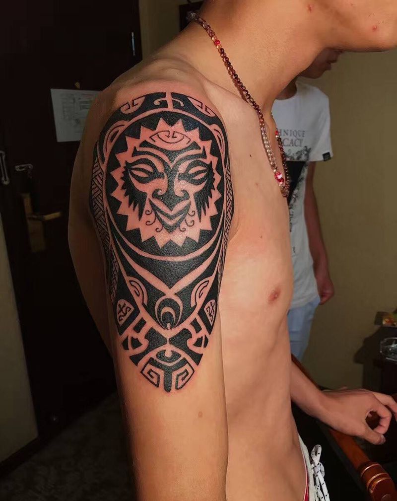 当前位置: 首页 >甘肃省酒泉市纹身店-海峰刺青纹身图案>图腾•大臂纹身图片